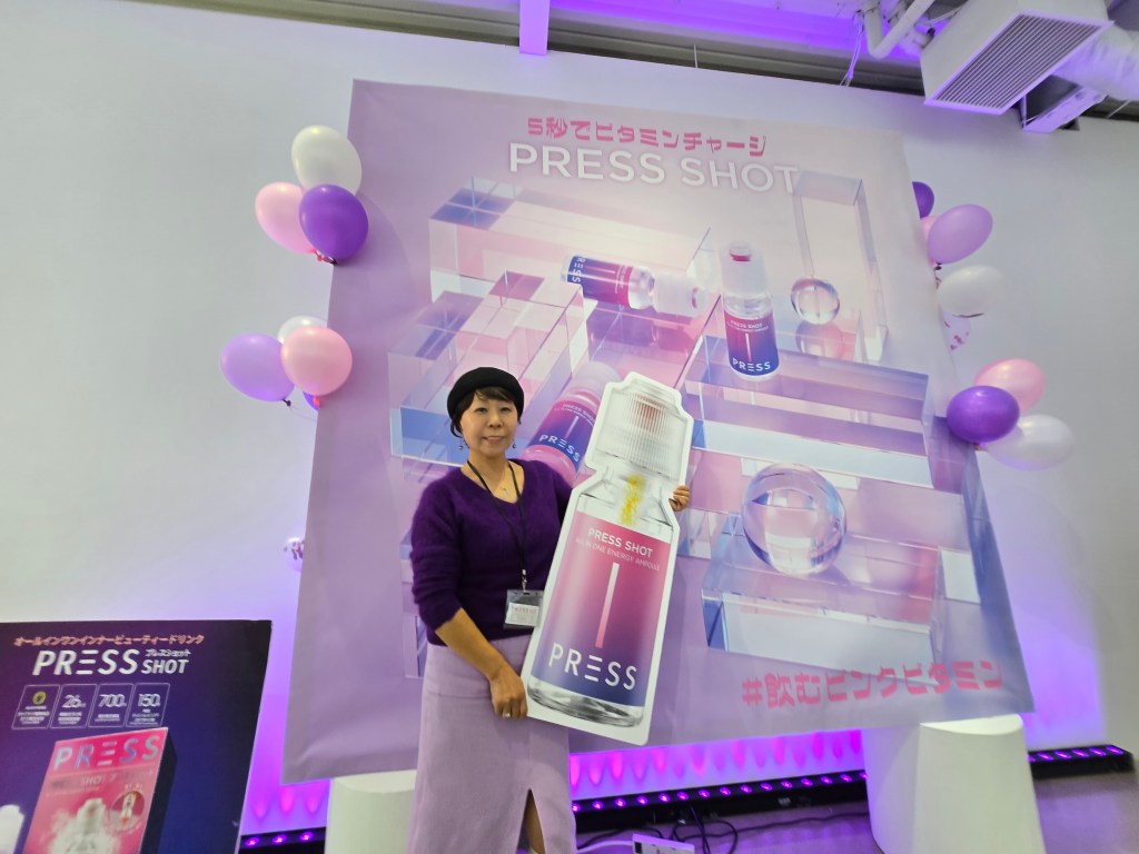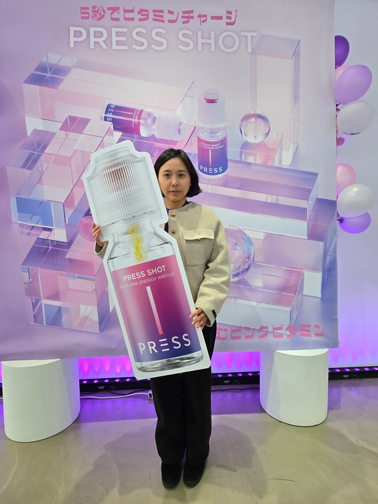 午後6時からの第2部では、SNSインフルエンサーが招待され、実際に「PRESS SHOT」を体験するセッションが行われた。参加者はキャップを押してビタミンパウダーを混ぜる独自の使用方法を体験し、鮮やかなピンク色に変化する液体の視覚的な魅力を楽しんだ。