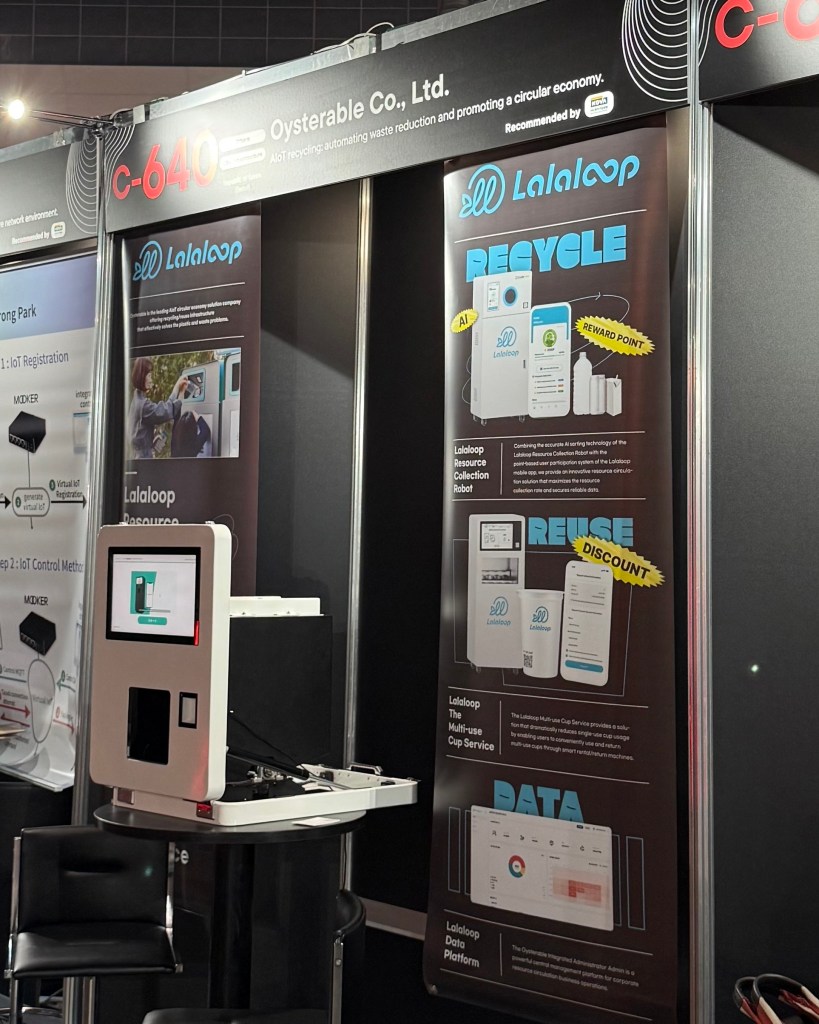 Oysterableの「Lalaloop」は、AIで廃棄物を自動選別し、利用者への報酬システムやデータ管理プラットフォームを通じて循環経済の透明性を高めるソリューションである。韓国ではEマートやスターバックスを含む多数の企業や自治体に導入されており、2025年現在、1,000台以上のロボットが稼働中で、約624トンの廃棄物削減成果を上げている。