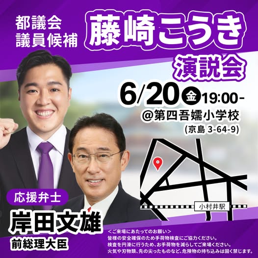 東京都議会議員選挙に出馬している藤崎こう…
