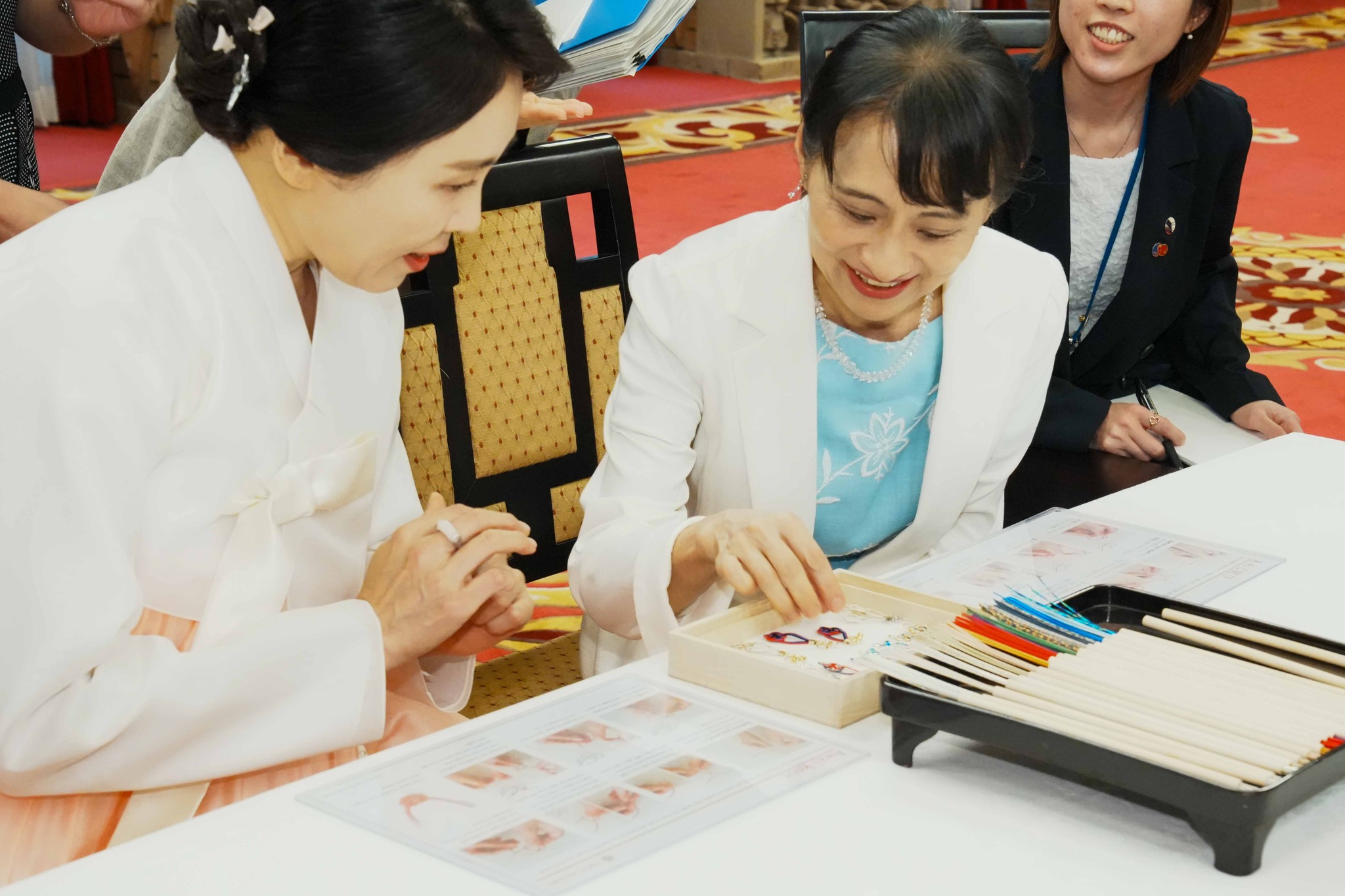 石破佳子首相夫人、韓国大統領夫人を迎え伝統工芸体験で親睦