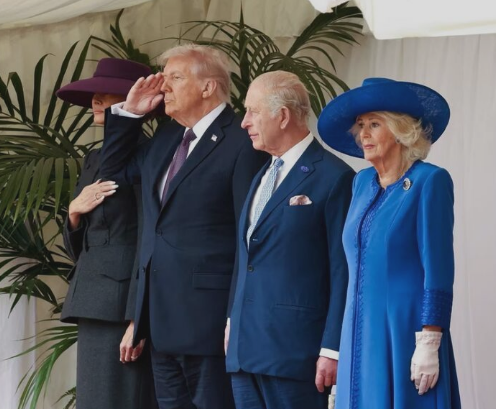英国王夫妻、トランプ米大統領夫妻を歓迎 ロンドンで抗議デモも