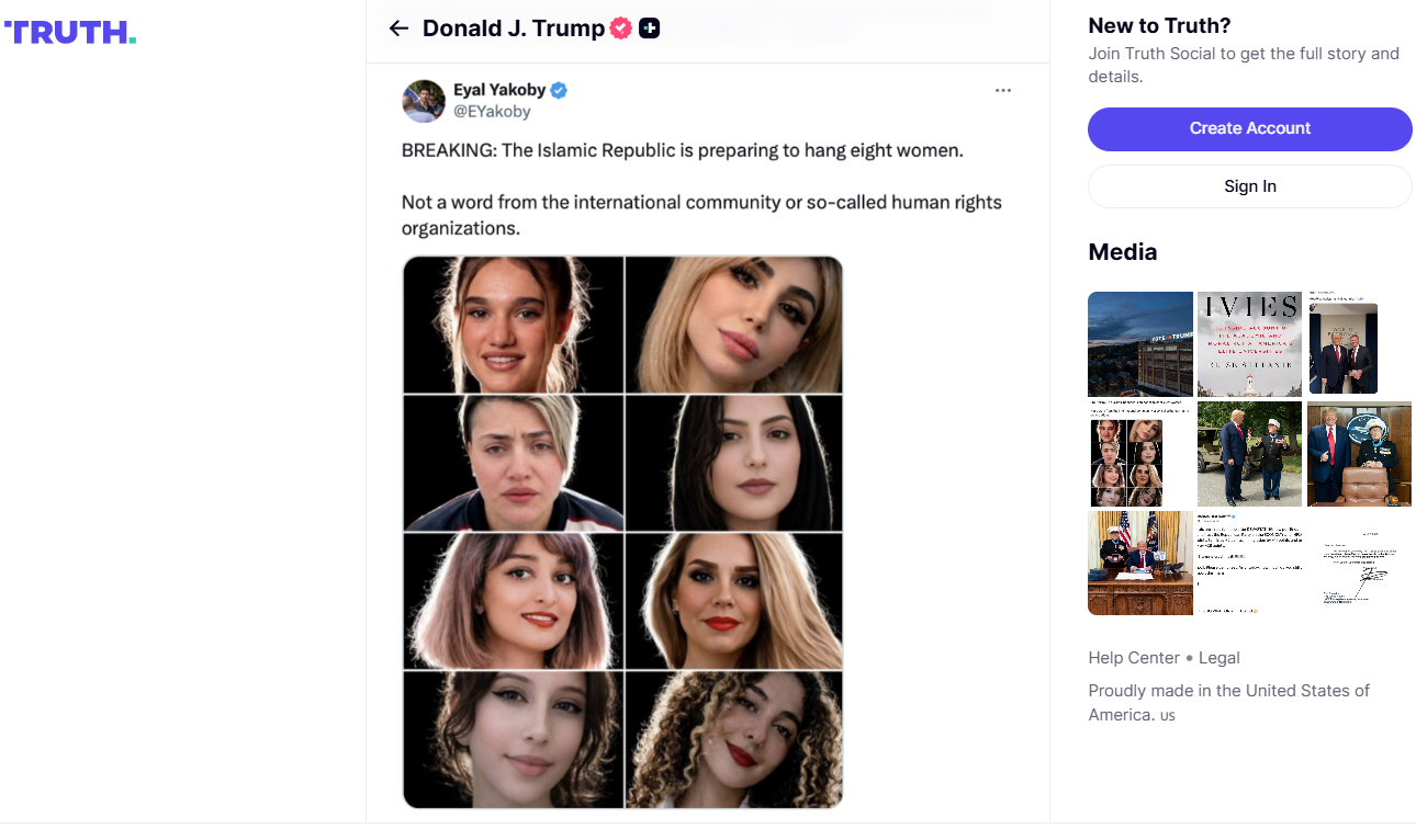 トランプ氏、イランに女性8人の死刑中止を要求 SNSで「慈悲」求める